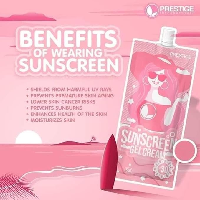 "Protect your skin with PRESTIGE Sunscreen Gel Cream. Stay safe from UV rays with this non-greasy formula. Shop now for ultimate sun protection!"